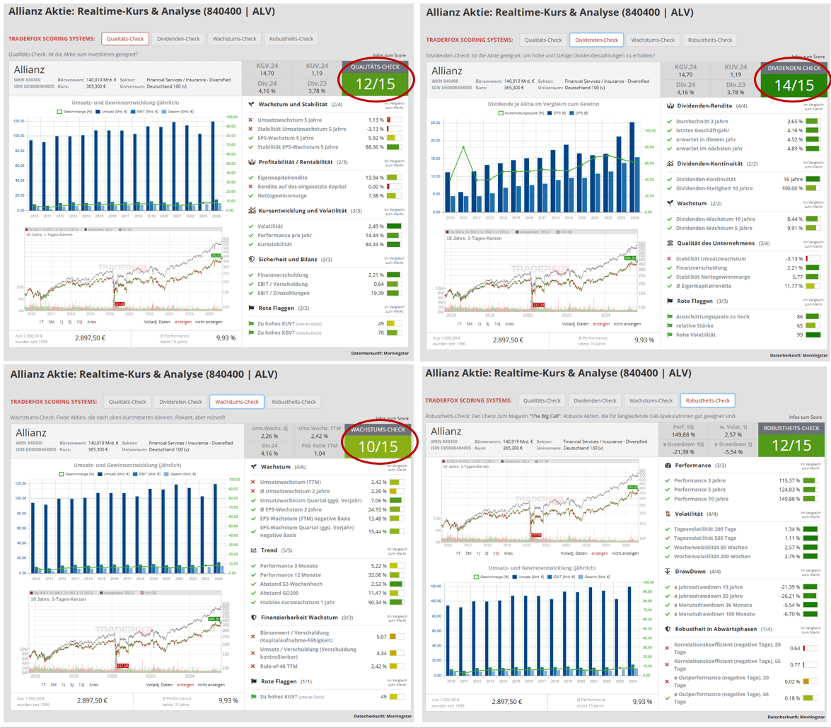 Wichtig: Dieses Scoring ist tagesaktuell und ändert sich über die Zeit. Solltest du einen Gesamtscore ermitteln und ein paar Jahre danach investieren, dann kann dies schon mehr als falsch sein.